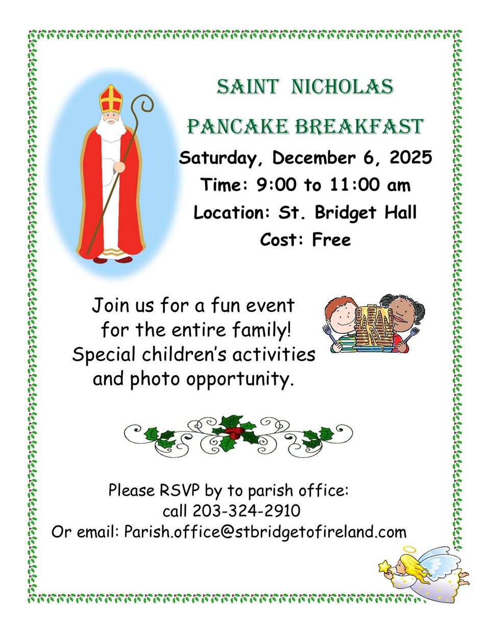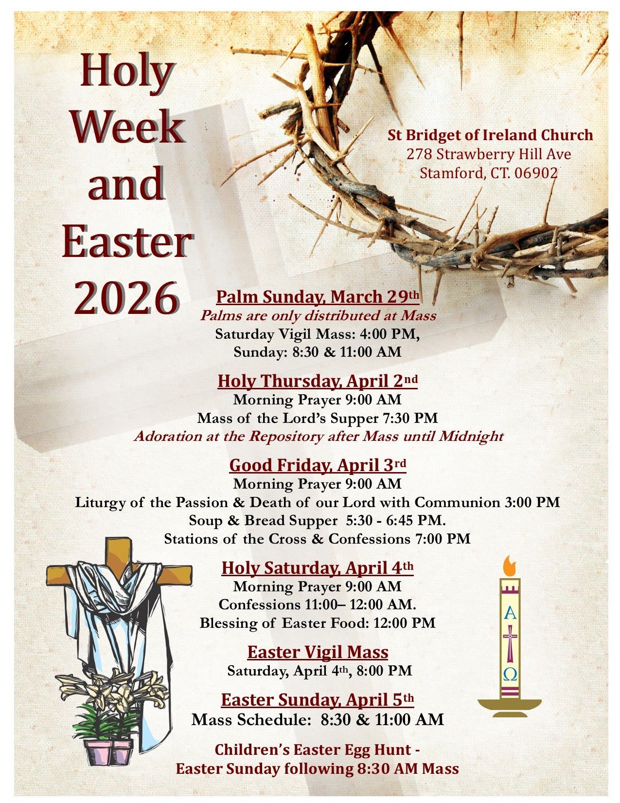 Please join us as we livestream Mass every Sunday at 8:30AM. You may watch on the player below, on our facebook page: Saint Bridget Stamford (which is also close captioned) or on youtube : Saint Bridget Stamford.